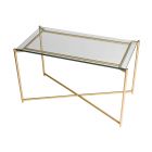 The Iris collection is a beautiful range of hallway and living room tables with a vintage twist, with mixed and matched tops and bases. This square coffee table will add an air of luxury to your modern home and is a useful piece of furniture to match any interior design. Crafted with an elegant glass top and supported by a stylish gold metal frame, this exquisite coffee table will create a stylish centrepiece for your lounge. Display an array of decorative items, flowers or your favourite photos.
