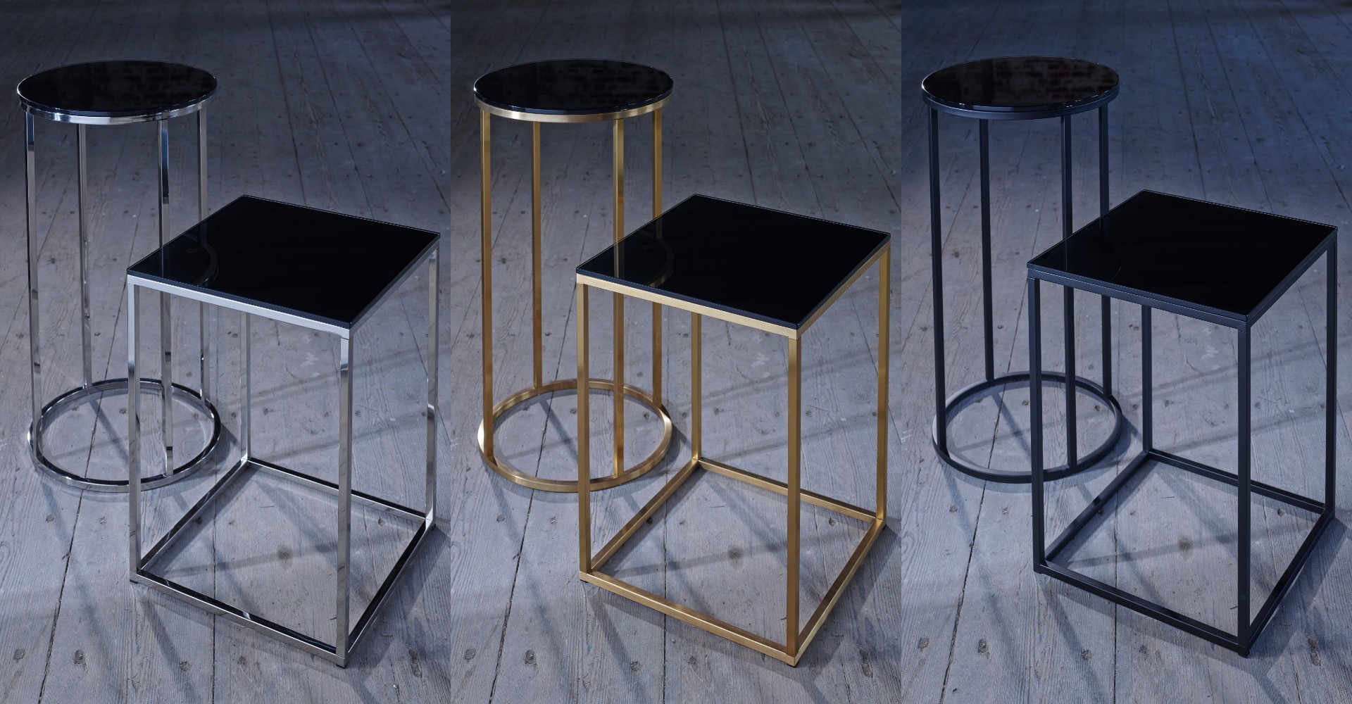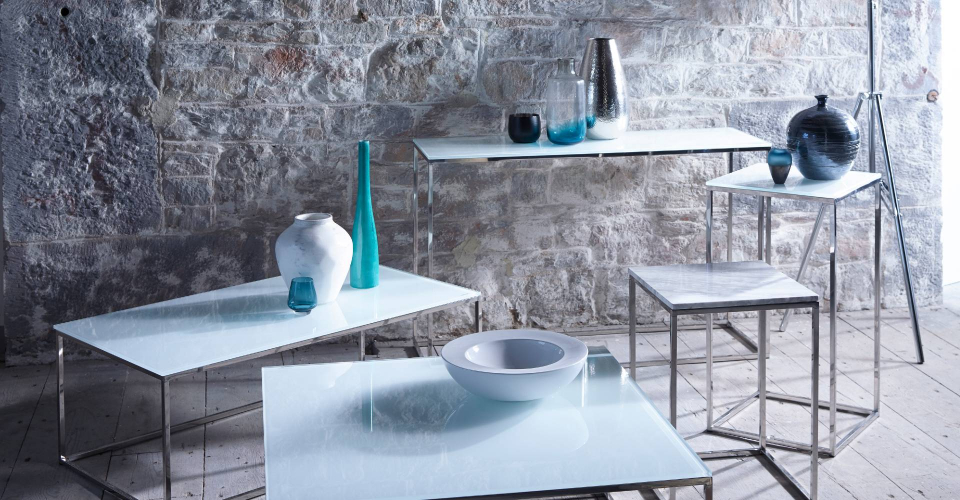 With a wide range of tops materials, including walnut, black glass, white glass, or marble, and sleek base finishes in satin brass, polished steel, or matt black, each design aims to add a touch of luxury to your home whilst complementing your already existing Gillmore furniture in stylish harmony.