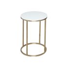 The Iona collection is a compelling new range of casual and stylish tables for modern homes, where the marriage between luxurious materials and unique geometric forms makes it the last word in graceful contemporary design. The unique gold hourglass side table is a true centrepiece for any living room setting, which adds a modern element to your space. It is crafted with a clear glass top and a golden cone base to warm up its silhouette, making it a perfect companion to any modern chair. It can be the perfect spot to place your favourite framed photos, decorative items, or drinks.